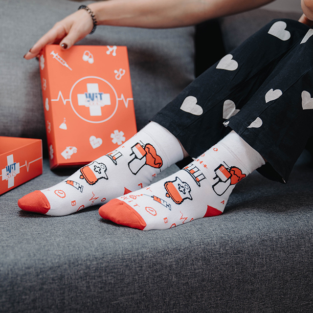 Ponožky Zdravotnictví jsou inspirovány odvahou a péčí těch, kteří se každý den starají o naše zdraví. Vzor těchto ponožek připomíná bílé pláště, stetoskopy a srdce plné oddanosti. Jsou vzdáním holdu všem lékařům, sestrám a zdravotníkům, kteří jsou našimi hrdiny v bílém.