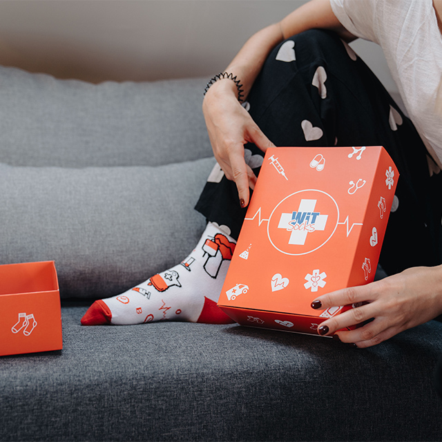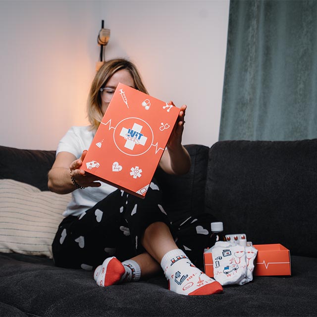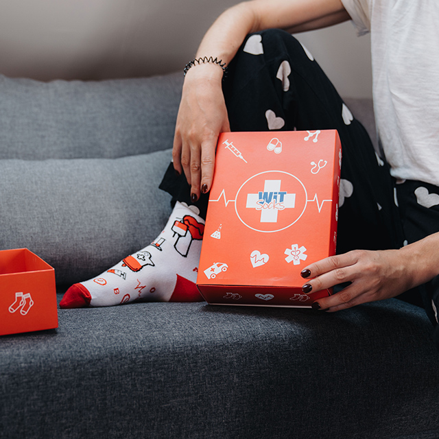 Dárkový set: 1x ponožky Zdravotnictví, 1x ponožky Zdravotnictví 4, 1x ponožky Zdravotnictví 5, 1x Dárková krabička.